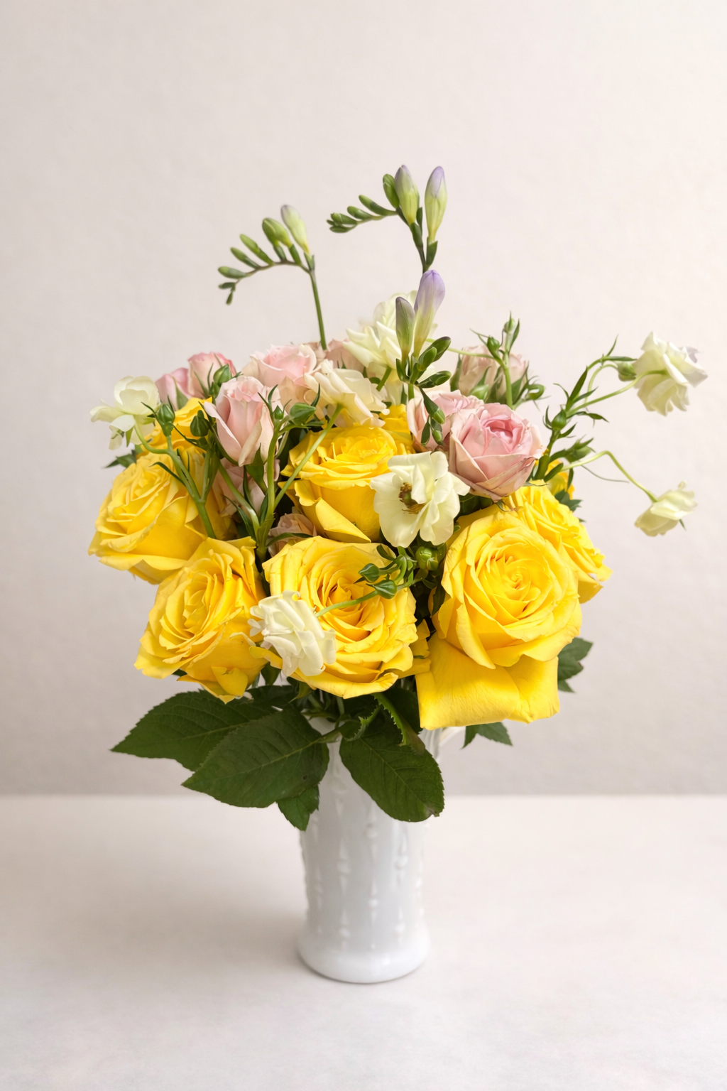 All arrangements are in hydrated packaging and include a care card with simple tips. When kept cool, trimmed, and re-watered daily, most blooms stay fresh for 5–14 days, with certain varieties lasting even longer.